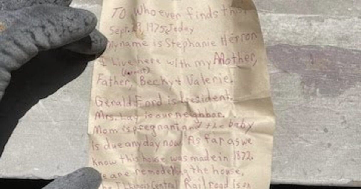 ಅಮೆರಿಕದ ಇಲಿನಾಯ್ಸ್ನ ಟೇಜ್ವೆಲ್ ಪ್ರದೇಶದ ಪುರಾತನ ಮನೆಯೊಂದರಲ್ಲಿ ಈ ಪತ್ರ ಸಿಕ್ಕಿದೆ. ಮನೆಯ ದುರಸ್ತಿ ಕಾರ್ಯ ನಡೆಸುತ್ತಿದ್ದಾಗ ಪತ್ರ ಸಿಕ್ಕಿದ್ದು, ಲಿವಿಂಗ್ ರೂಮ್ನ ಮರದ ಗೋಡೆಯ ಮೇಲೆ ರಹಸ್ಯ ಮಾರ್ಗವನ್ನು ಸೂಚಿಸುವಂತೆ ಬಾಣದ ಗುರುತು ಹಾಕಿ Note 9/29/1975 ಎಂದು ಬರೆದಿದ್ದು, ಇದನ್ನು ಡಕೋಟ ಮೋನ್ ಎಂಬ ಕಾರ್ಪೆಂಟರ್ ನೋಡಿದ್ದಾರೆ. ಅಲ್ಲಿ ನೋಡುವಾಗ ಗೋಡೆಯ ಹಿಂದಿನ ಬಾಟಲಿಯೊಳಗೆ ಎರಡು ಪುಟಗಳ ಪತ್ರಗಳು ಸಿಕ್ಕಿದೆ. ಅದನ್ನು 14 ವರ್ಷದ ಸ್ಟೆಫನಿ ಹೆರಾನ್ ಎಂಬ ಬಾಲಕಿ ಬರೆದಿದ್ದಳು.