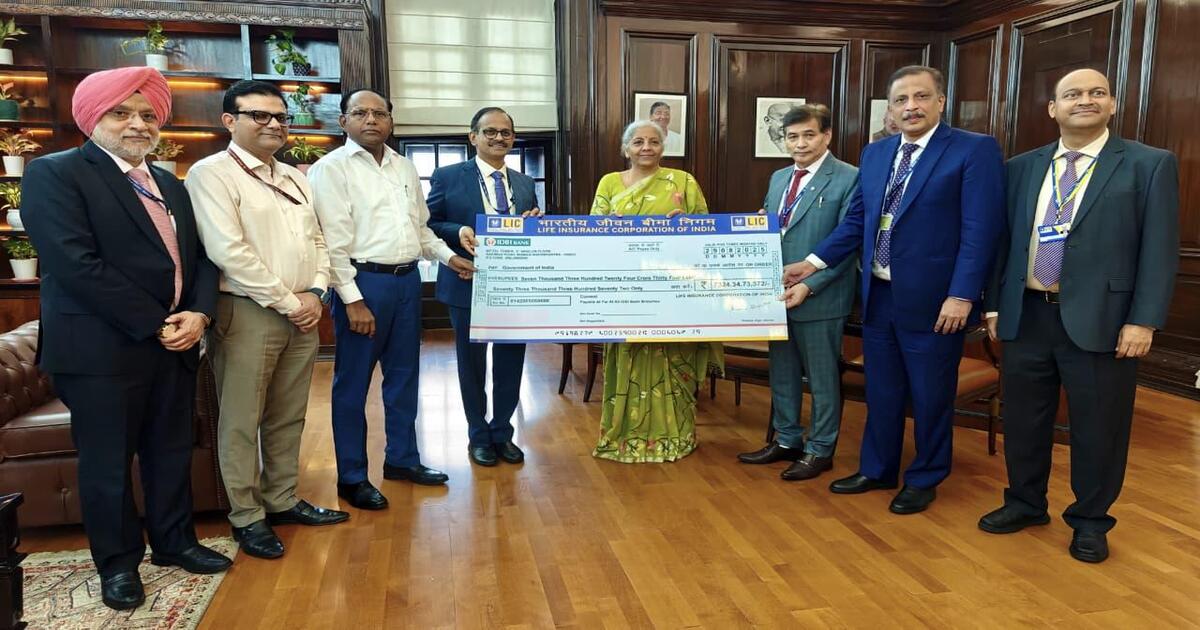 ಎಲ್ಐಸಿ ಸಿಇಒ ಮತ್ತು ವ್ಯವಸ್ಥಾಪಕ ನಿರ್ದೇಶಕ ಆರ್. ದೊರೈಸ್ವಾಮಿ ಅವರು ಹಣಕಾಸು ಸೇವೆಗಳ ಇಲಾಖೆಯ ಕಾರ್ಯದರ್ಶಿ ಎಂ. ನಾಗರಾಜು ಮತ್ತು ಜಂಟಿ ಕಾರ್ಯದರ್ಶಿ ಪ್ರಶಾಂತ್ ಕುಮಾರ್ ಗೋಯಲ್ ಮತ್ತು ವಿಮಾ ಕಂಪನಿಯ ಹಿರಿಯ ಅಧಿಕಾರಿಗಳ ಸಮ್ಮುಖದಲ್ಲಿ ಹಣಕಾಸು ಸಚಿವರಿಗೆ ಲಾಭಾಂಶ ಚೆಕ್ ಅನ್ನು ಹಸ್ತಾಂತರಿಸಿದರು. ಮಾರ್ಚ್ 31, 2025 ರ ವೇಳೆಗೆ ಎಲ್ಐಸಿಯ ಆಸ್ತಿ ಮೂಲವು 56.23 ಲಕ್ಷ ಕೋಟಿ ರೂ.ಗಳಷ್ಟಿತ್ತು. ಕಂಪನಿಯು ಜೀವ ವಿಮಾ, ಮಾರುಕಟ್ಟೆಯಲ್ಲಿ ಮುಂಚೂಣಿಯಲ್ಲಿ ಮುಂದುವರೆದಿದೆ.