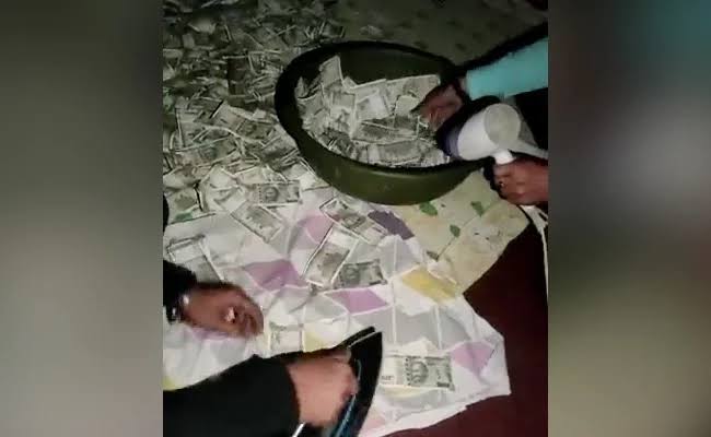 ಟ್ಯಾಂಕ್ನಿಂದ ಹಣ ತೆಗೆದ ಅಧಿಕಾರಿಗಳು, ನೀರಿನಲ್ಲಿ ನೆಂದಿದ್ದ ನೋಟುಗಳನ್ನು ಐರನ್ ಹಾಗೂ ಹೇರ್ ಡ್ರೈಯರ್ ಸಹಾಯದಿಂದ ಒಣಗಿಸುತ್ತಿರುವ ವಿಡಿಯೋ ವೈರಲ್ ಆಗುತ್ತಿದೆ.