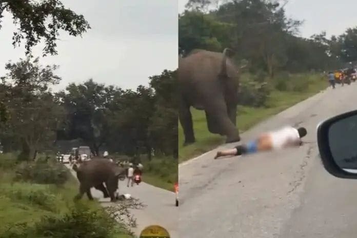 ತಮಿಳುನಾಡಿನಿಂದ ಗುಂಡ್ಲುಪೇಟೆಗೆ ಬರುವ ಮಾರ್ಗ ಮಧ್ಯೆ ರಸ್ತೆ ಬದಿಯಲ್ಲಿ ನಿಂತಿದ್ದ ಒಂಟಿ ಆನೆಯ ಸನಿಹಕ್ಕೆ ತೆರಳಿ ಫೋಟೋ ಕ್ಲಿಕ್ಕಿಸಲು ಮುಂದಾಗಿದ್ದ ಆಸಾಮಿಯನ್ನ ಅಟ್ಟಿಸಿಕೊಂಡು ಹೋಗಿದೆ. ಏ ಕುರಿತಾದ ವಿಡಿಯೋ ಸೋಶಿಯಲ್ ಮೀಡಿಯಾದಲ್ಲಿ ವೈರಲ್ ಆಗಿದೆ. ಅದರಲ್ಲಿ ಆತನ ಚಡ್ಡಿ ಉದುರಿ ರೋಡಲ್ಲಿ ಮಲಗಿರುವುದನ್ನು ಕೂಡ ಕಾಣಬಹುದು.