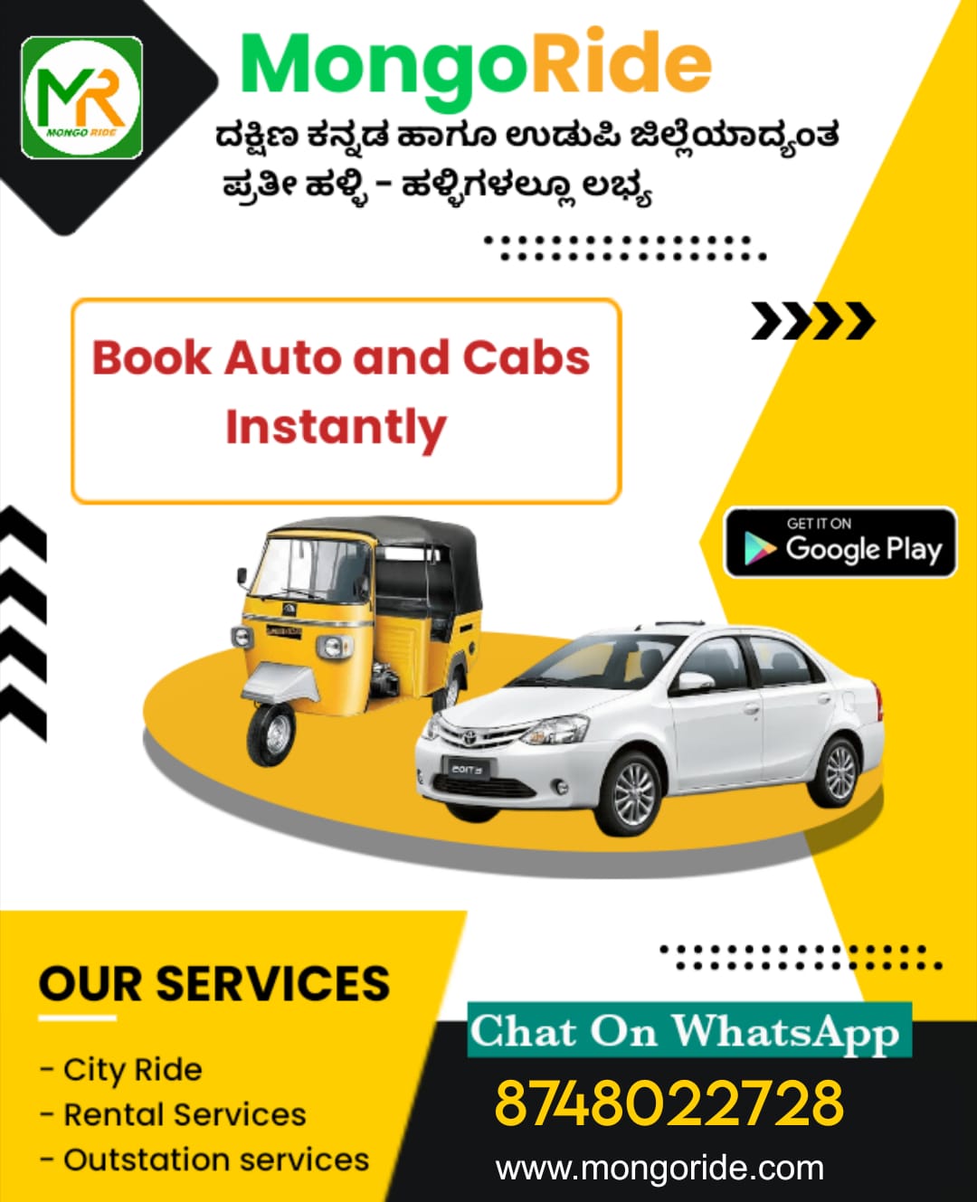 ಗ್ರಾಹಕರು ಮಾಂಗೋರೈಡ್ (MongoRide) ಡೌನ್ಲೋಡ್ ಮಾಡಿಕೊಳ್ಳಲು ಈ ಲಿಂಕ್ ಕ್ಲಿಕ್ ಮಾಡಿ. (App PlayStore ನಲ್ಲಿ ಲಭ್ಯ)