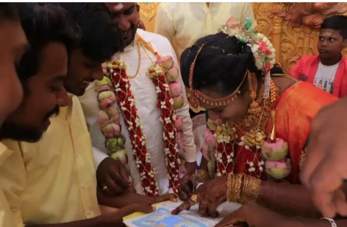 ಹೌದು, ತಮಿಳುನಾಡಿನ ಮಧುರೈ ಜಿಲ್ಲೆಯ ಉಸಿಲಂಪಟ್ಟಿಯಲ್ಲಿ ನಡೆದ ವಿವಾಹ ಸಮಾರಂಭ ಇಂತಹ ವಿಚಿತ್ರ ಹಾಗೂ ಅಚ್ಚರಿಯ ಕ್ಷಣಕ್ಕೆ ಸಾಕ್ಷಿಯಾಗಿದೆ. ಕೀಳ ಪುದೂರಿನ ನಿವಾಸಿ ಹರಿಪ್ರಸಾದ್ ಹಾಗೂ ಪೂಜಾ ಆಗಷ್ಟೇ ಹಸೆಮಣೆ ಏರಿ ವೇದಿಕೆಗೆ ಬಂದಿದ್ದರು. ಖಾಸಗಿ ಇಂಜಿನಿಯರಿಂಗ್ ಕಾಲೇಜಿನಲ್ಲಿ ಉಪನ್ಯಾಸಕರಾಗಿ ಕಾರ್ಯನಿರ್ವಹಿಸುತ್ತಿರುವ ಹರಿಪ್ರಸಾದ್, ಸ್ಥಳೀಯ ಸೂಪರ್ ಸ್ಟಾರ್ ಕ್ರಿಕೆಟ್ ಕ್ಲಬ್ ತಂಡದ ನಾಯಕರಾಗಿದ್ದಾರೆ.