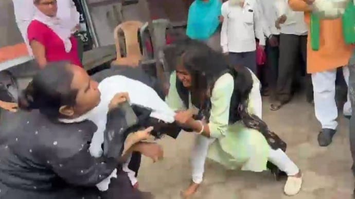 ➡आपस में झगड़ती और मारपीट करती नजर आईं दोनों