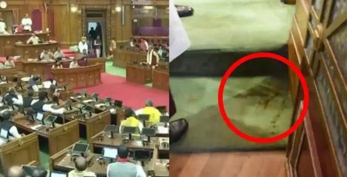 #UttarPradesh Assembly Speaker Satish Mahana (@Satishmahanaup) says, “This morning I received information that in this hall of our Vidhan Sabha, some Member has spit after consuming pan masala. So, I came here and got it cleaned. I have seen the MLA in the video. But I do not… pic.twitter.com/iTC9tWDIa9