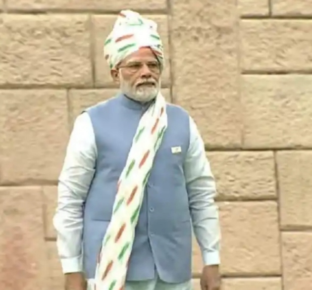 ಹೌದು. ರಾಷ್ಟ್ರೀಯ ಧ್ವಜದ ಚಿತ್ರವಿರುವ ಟರ್ಬಾನ್ ತೊಟ್ಟು, ಬಿಳಿ ಜುಬ್ಬಾ- ಪೈಜಾಮದ ಮೇಲೆ ನೀಲಿ ಬಣ್ಣದ ನೆಹರೂ ಜಾಕೆಟ್ ತೊಟ್ಟು ಮೋದಿ ಸ್ವಾತಂತ್ರ್ಯೋತ್ಸವದಲ್ಲಿ ಪಾಲ್ಗೊಂಡಿದ್ದಾರೆ. ಸ್ವಾತಂತ್ರ್ಯ ದಿನಾಚರಣೆಯ ಭಾಷಣಗಳಲ್ಲಿ ಪ್ರಧಾನಿ ನರೇಂದ್ರ ಮೋದಿಯವರ ವಿಶಿಷ್ಟ ಉಡುಪುಗಳು ಯಾವಾಗಲೂ ರಾಷ್ಟ್ರದ ಗಮನವನ್ನು ಸೆಳೆಯುತ್ತವೆ. ಈ ವರ್ಷ ಭಾರತದ 75ನೇ ಸ್ವಾತಂತ್ರ್ಯ ದಿನಾಚರಣೆಯ ಸಂದರ್ಭದಲ್ಲಿ ಪ್ರಧಾನ ಮಂತ್ರಿ ಮೋದಿ ಸಾಂಪ್ರದಾಯಿಕ ಕುರ್ತಾ ಮತ್ತು ನೀಲಿ ಜಾಕೆಟ್ ಮತ್ತು ಪೇಟವನ್ನು ಧರಿಸಿದ್ದರು.