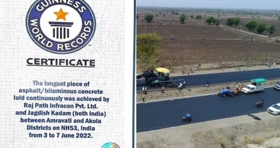 ಭಾರತದ ರಾಷ್ಟ್ರೀಯ ಹೆದ್ದಾರಿ ಪ್ರಾಧಿಕಾರ(ಎನ್ಎಚ್ಎಐ) ಅಮರಾವತಿ ಮತ್ತು ಅಕೋಲಾ ನಡುವಿನ 75 ಕಿ.ಮೀ ಉದ್ದದ ಹೆದ್ದಾರಿಯನ್ನು ಕೇವಲ 5 ದಿನಗಳಲ್ಲಿ ನಿರ್ಮಿಸುವ ಮೂಲಕ ಗಿನ್ನೆಸ್ ವಿಶ್ವ ದಾಖಲೆ ನಿರ್ಮಿಸಿದೆ.