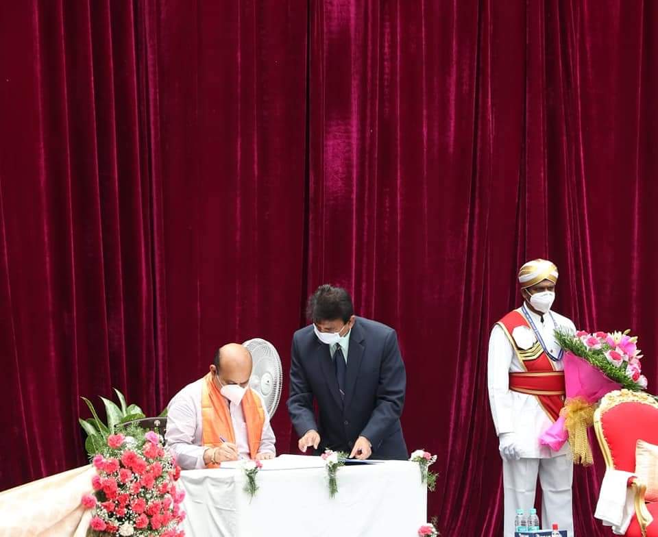ರಾಜ್ಯಪಾಲ ಥಾವರ್ಚಾಂದ ಗೆಹ್ಲೋಟ್ ಅವರು ಪ್ರಮಾಣವಚನ ಬೋಧಿಸಿದರು. ರಾಜ್ಯ ಸರ್ಕಾರದ ಮುಖ್ಯ ಕಾರ್ಯದರ್ಶಿ ಪಿ.ರವಿಕುಮಾರ್ ಕಾರ್ಯಕ್ರಮ ನಡೆಸಿಕೊಟ್ಟರು. ಬಳಿಕ ನೂತನ ಮುಖ್ಯಮಂತ್ರಿ ಕಡತಕ್ಕೆ ಸಹಿ ಹಾಕಿದರು. ನಂತರ ರಾಜ್ಯಪಾಲ ಗೆಹ್ಲೋಟ್ ಅವರ ಸಿಎಂ ಬೊಮ್ಮಾಯಿ ಅವರಿಗೆ ಹೂಗುಚ್ಛ ನೀಡಿ ಅಭಿನಂದಿಸಿದರು.