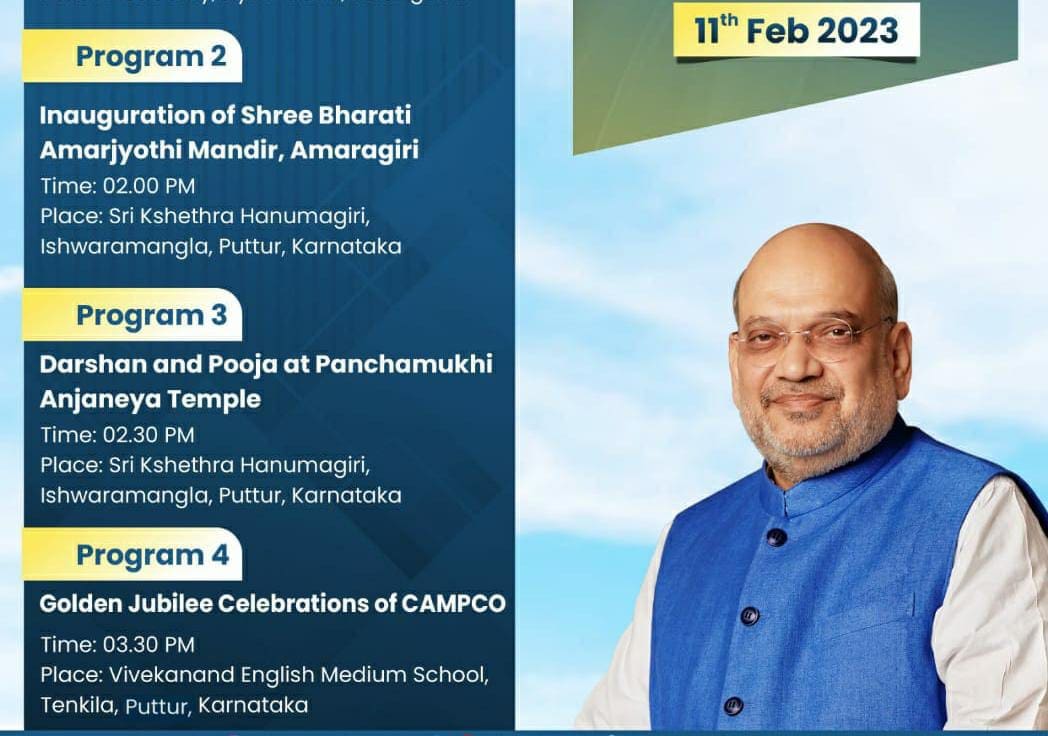 ಏಷ್ಯಾದಲ್ಲೇ ಪ್ರತಿಷ್ಠಿತ ಸಹಕಾರಿ ಸಂಸ್ಥೆ ಎಂಬ ಹೆಗ್ಗಳಿಕೆಗೆ ಪಾತ್ರವಾದ ಕ್ಯಾಂಪ್ಕೋ ಸಂಸ್ಥೆಯ ಸುವರ್ಣ ಮಹೋತ್ಸವ ಕಾರ್ಯಕ್ರಮ ಹಾಗೂ ಹನುಮಗಿರಿ ದೇವಾಲಯದ ಅಮರಗಿರಿ ಮಂದಿರ ಲೋಕಾರ್ಪಣೆ ಹಿನ್ನೆಲೆಯಲ್ಲಿ ಕರಾವಳಿ ಭಾಗಕ್ಕೆ ಪ್ರವಾಸ ಕೈಗೊಂಡಿರುವ ಕೇಂದ್ರ ಗೃಹ ಹಾಗೂ ಸಹಕಾರ ಸಚಿವ ಅಮಿತ್ ಷಾ ಭೇಟಿ ಸಹಕಾರಿ ಕ್ಷೇತ್ರ ಮತ್ತು ರಾಜಕೀಯ ವಲಯದಲ್ಲಿ ಹೊಸ ಸಂಚಲನ ಸೃಷ್ಟಿಸಿದೆ. ವಾರಣಾಸಿ ಸುಬ್ರಾಯ ಭಟ್ಟರ ಕನಸಿನ ಕೂಸಾದ ಕ್ಯಾಂಪ್ಕೋ ಸಂಸ್ಥೆಯ ಕಾರ್ಯಕ್ರಮದಲ್ಲಿ ಕರಾವಳಿಯ ರೈತಾಪಿ ವರ್ಗದಲ್ಲಿ ಹೊಸ ಭರವಸೆ ಮೂಡಿರುವುದಲ್ಲದೆ ಮುಂಬರುವ ಚುನಾವಣಾ ಹಿನ್ನೆಲೆಯಲ್ಲೂ ಈ ಸಮಾವೇಶ ದಿಕ್ಸೂಚಿಯೆಂದೇ ಅಂದಾಜಿಸಲಾಗಿದೆ.