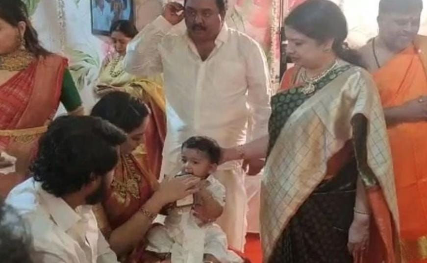 ಜೆಪಿ ನಗರದ ವೆಂಕಟೇಶ್ವರ ದೇವಸ್ಥಾನದಲ್ಲಿ ಶಾಸ್ತ್ರೋಕ್ತವಾಗಿ ನಾಮಕರಣ ಕಾರ್ಯಕ್ರಮ ನಡೆದಿದ್ದು, ಮಾಜಿ ಪ್ರಧಾನಿ ಹೆಚ್​​.ಡಿ.ದೇವೇಗೌಡ ಸೇರಿದಂತೆ ಕುಟುಂಬಸ್ಥರು ಭಾಗಿಯಾಗಿದ್ದರು. 10:30 ರಿಂದ 12:20 ರವರೆಗೂ ನಡೆಯುವ ಶುಭ ಲಗ್ನದಲ್ಲಿ ನಾಮಕರಣ ಕಾರ್ಯಕ್ರಮ ನಡೆದಿದ್ದು, ಕುಟುಂಬಸ್ಥರು ಪ್ರಪೌತ್ರ ಜನನ ಶಾಂತಿ, ನಾಮಕರಣ, ಕನಕಾಭಿಷೇಕ ಕಾರ್ಯಕ್ರಮವನ್ನು ಹಮ್ಮಿಕೊಂಡಿದ್ದರು.