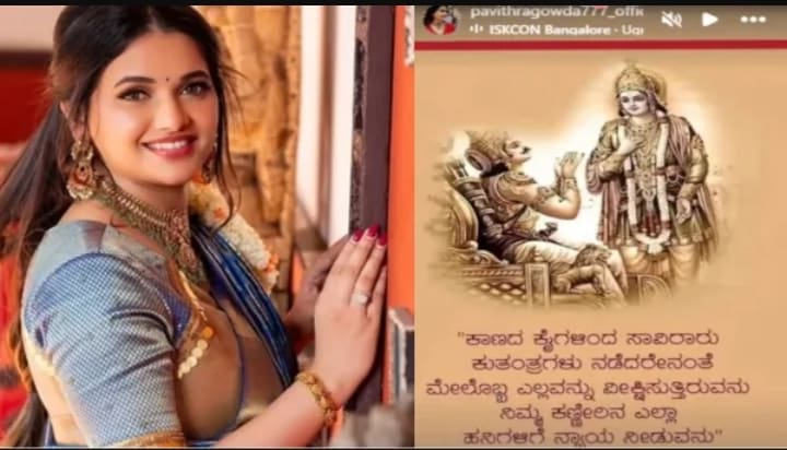 ಪವಿತ್ರಾ ಗೌಡ ತನ್ನ ಇನ್ಸ್ಟಾಗ್ರಾಂ ಖಾತೆಯಲ್ಲಿ ಶ್ರೀಕೃಷ್ಣನು ಅರ್ಜುನನಿಗೆ ಭಗವದ್ಗೀತೆ ಬೋಧಿಸುವ ಚಿತ್ರವನ್ನು ಹಾಕಿದ್ದು, ರಹಸ್ಯ ಸಂದೇಶವೊಂದನ್ನು ಬರೆದು ಹಾಕಿದ್ದಾರೆ. ಅದೇನೆಂದರೆ ” ಕಾಣದ ಕೈಗಳಿಂದ ಸಾವಿರಾರು ಕುತಂತ್ರಗಳು ನಡೆದರೇನಂತೆ ಮೇಲೊಬ್ಬ ಎಲ್ಲವನ್ನು ವೀಕ್ಷಿಸುತ್ತಿರುವನು. ನಿಮ್ಮ ಕಣ್ಣೀರಿನ ಎಲ್ಲಾ ಹನಿಗಳಿಗೆ ನ್ಯಾಯ ನೀಡುವನು” ಎಂದು ಪೋಸ್ಟ್ ಮಾಡಿದ್ದಾರೆ.