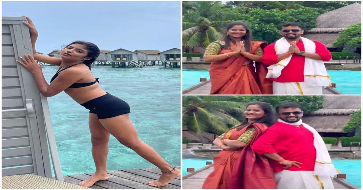 ಯಾಕೆಂದರೆ ಕೆಲವೊಂದು ವಿವಾದಗಳಿಂದ ಕರ್ನಾಟಕದಲ್ಲಿ ಈಗಾಗಲೇ ಫೇಮಸ್ ಆಗಿರೋ, ಬಿಗ್ ಬಾಸ್ ಖ್ಯಾತಿಯ ಸೋನು ಶ್ರೀನಿವಾಸ್ಗೌಡ ಮಾಲ್ಡೀವ್ಸ್ಗೆ ಹೋಗಿ ತಾನು ಯಾವ ಹೀರೋಯಿನ್ಗೂ ಕಡಿಮೆಯಿಲ್ಲವೆಂಬಂತೆ ಬಿಕಿನಿ ತೊಟ್ಟು ಹಾಟ್ ಪೋಸ್ ನೀಡಿದ್ದಾರೆ. ಇನ್ನು ಗಿಚ್ಚಿ ಗಿಲಿಗಿಲಿ ಸೀಸನ್-2 ಖ್ಯಾತಿಯ ಧನ್ರಾಜ್ ಹಾಗೂ ಅವರ ಪತ್ನಿ ಪ್ರಜ್ಞಾ ಧನ್ರಾಜ್ ಮಾಲ್ಡೀವ್ಸ್ಗೆ ಹೋಗಿದ್ದು ದಂಪತಿ ಸಮೇತವಾಗಿ ಫೋಟೋಗೆ ಪೋಸ್ ನೀಡಿದ್ದಾರೆ. ಇದರಲ್ಲಿ ಭಾರತೀಯ ಸಂಪ್ರದಾಯದಂತೆ ಧನರಾಜ್ ಪಂಚೆ ಶರ್ಟ್ ಹಾಕಿ ಫೋಸ್ ನೀಡಿದ್ರೆ, ಅವರ ಶ್ರೀಮತಿ ಸೀರೆ ಉಟ್ಟು ನಗೆ ಬೀರಿದ್ದಾರೆ.