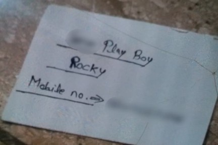 ನವರಾಯಪುರ ಪ್ರದೇಶದಲ್ಲಿ ಕೆಲ ಮನೆಗಳ ಮುಂದೆ ಚೀಟಿಯೊಂದು ಕಂಡಿದೆ. ಅದನ್ನು ತೆಗೆದು ನೋಡಿದಾಗ, ಪ್ಲೇಬಾಯ್ ರಾಕಿ ಎಂದು ಬರೆಯಲಾಗಿದ್ದು, ಸಂಪರ್ಕ ಸಂಖ್ಯೆಯನ್ನೂ ನಮೂದಿಸಲಾಗಿತ್ತು. ಇದನ್ನು ಕಂಡ ಮನೆಯವರು ಅಚ್ಚರಿಯ ಜೊತೆ ಕುಪಿತರಾಗಿದ್ದಾರೆ. ಪ್ಲೇ ಬಾಯ್ ರಾಕಿ ಸೇರಿದಂತೆ ಅಶ್ಲೀಲ ಬರಹವುಳ್ಳ ಚೀಟಿಯನ್ನು ಕಾಲೊನಿಯ 10 ಕ್ಕೂ ಅಧಿಕ ಮನೆಗಳ ಮುಂದೆ ಕಿಡಿಗೇಡಿಗಳು ಬಿಸಾಡಿದ್ದರು. ಈ ಸುದ್ದಿ ನಿಧಾನವಾಗಿ ಕಾಲೊನಿಯಲ್ಲಿ ಹಬ್ಬಿಕೊಂಡು ಮನೆಯ ಮುಂದೆ ಚೀಟಿ ಸಿಕ್ಕವರು, ಕಿಡಿಗೇಡಿ ಯುವಕರನ್ನು ಪ್ರಶ್ನಿಸಿದ್ದಾರೆ.