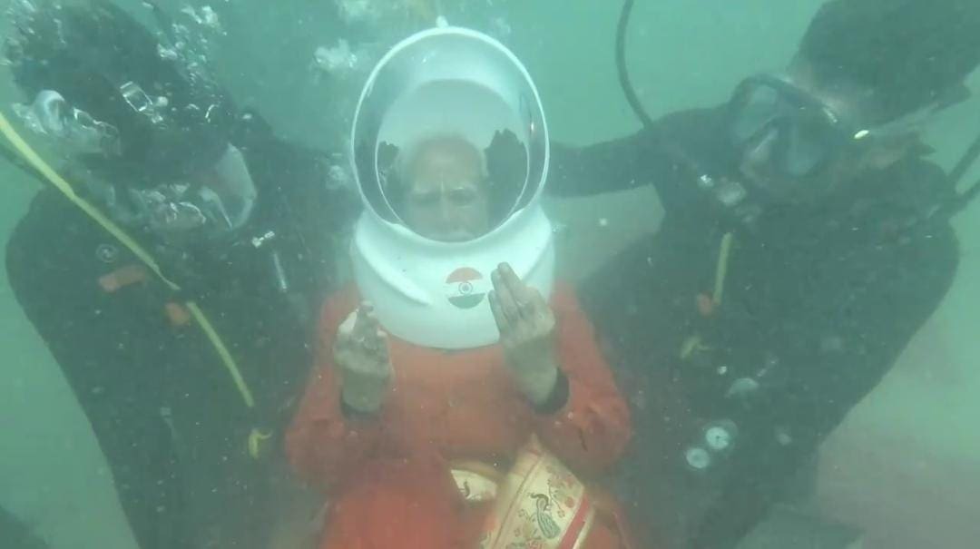 ದ್ವಾರಕಾಗೆ ಭೇಟಿ ನೀಡಿದ ಬಳಿಕ ಪ್ರಧಾನಿ ಮೋದಿ ಅವರು ನೌಕಾಪಡೆಯ ಸಿಬ್ಬಂದಿಯೊಂದಿಗೆ ಸ್ಕೂಬಾ ಡೈವ್ಗೆ ತೆರಳಿದರು.
