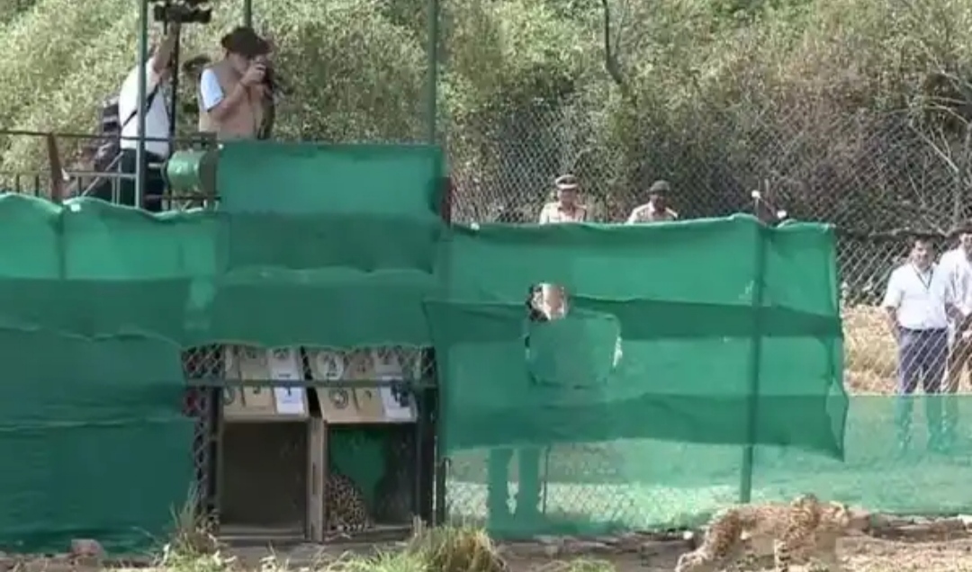 ನಮೀಬಿಯಾದಿಂದ ವಿಶೇಷ ವಿಮಾನ ಮೂಲಕ ಕರೆತರಲಾದ 8 ಚೀತಾಗಳನ್ನು ಮಧ್ಯಪ್ರದೇಶದ ಕುನೋ ರಾಷ್ಟ್ರೀಯ ಉದ್ಯಾನವನಕ್ಕೆ ಬಿಡುಗಡೆ ಮಾಡಿದ್ದಾರೆ. ಬೋನಿನ ಬಾಗಿಲುಗಳನ್ನು ಯಂತ್ರದ ಸಹಾಯದ ಮೂಲಕ ತೆರೆಯುವುದರೊಂದಿಗೆ ಪ್ರಧಾನಿ ಮೋದಿ ಅವರು ಚೀತಾಗಳನ್ನು ಭಾರತದ ಮಣ್ಣಿಗೆ ಬಿಟ್ಟರು.