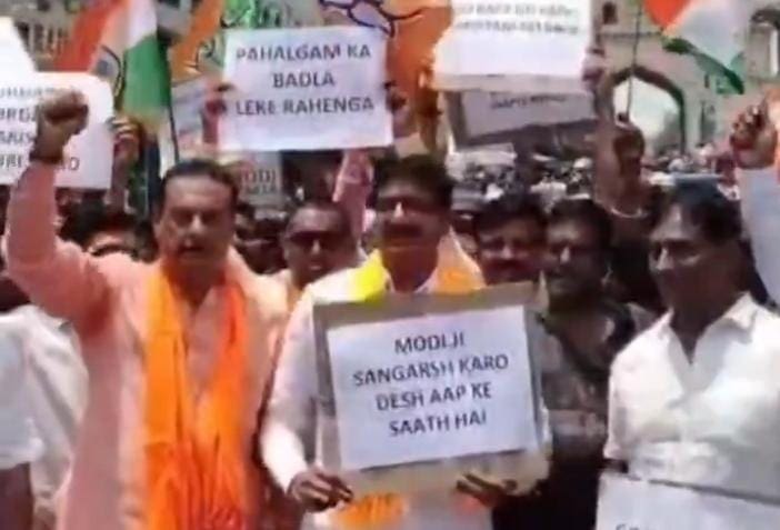 Hyderabad: ಕಾಶ್ಮೀರದಲ್ಲಿ ನಡೆದ ಉಗ್ರರ ದಾಳಿಯಿಂದಾಗಿ ದೇಶಾದ್ಯಂತ ಪಾಕಿಸ್ತಾನದ ವಿರುದ್ಧ ತೀವ್ರ ಪ್ರತಿಭಟನೆಗಳು ನಡೆಯುತ್ತಿವೆ. ಹಲವೆಡೆ ಜನರು ಪಾಕ್ ವಿರುದ್ಧ ಘೋಷಣೆ ಕೂಗಿ, ಪ್ರತಿಭಟನೆ ನಡೆಸಿ ಆಕ್ರೋಶ ಹೊರಹಾಕಿದ್ದಾರೆ.