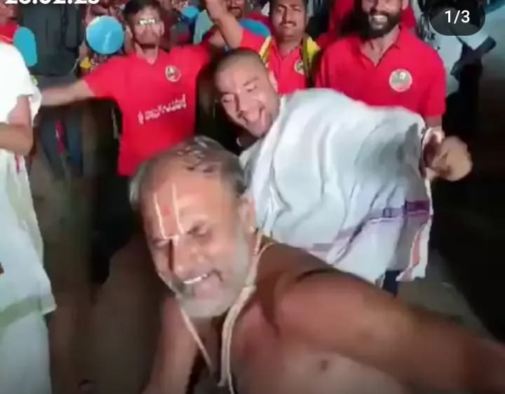 Rathotsavam Video: ಆಂಧ್ರದ ಶ್ರೀಕಾಕುಳಂ ಜಿಲ್ಲೆಯಲ್ಲಿ ಶ್ರೀ ವಾಸುದೇವ ಪೆರುಮಾಳ್ ದೇವಸ್ಥಾನದ 16ನೇ ವಾರ್ಷಿಕೋತ್ಸವದ ಹಿನ್ನೆಯಲ್ಲಯಲ್ಲಿ ಬ್ರಹೋತ್ಸವ ಆಚರಣೆ ಸಂದರ್ಭದಲ್ಲಿ ಅದ್ಧೂರಿ ಡಿಜೆ ಸೌಂಡ್ ಹಾಕಲಾಗಿದ್ದು, ಭಕ್ತಿ ಸಂಪ್ರದಾಯದಲ್ಲಿ ಎಲ್ಲಾ ಭಕ್ತರು ಮುಳುಗಿರುವಾಗ ಪುರೋಹಿತರು ಮ್ಯೂಸಿಕ್ಗೆ ತಕ್ಕ ಬ್ರೇಕ್ ಡ್ಯಾನ್ಸ್ ಮಾಡಿ ಎಲ್ಲರೂ ಮೂಗಿನ ಮೇಲೆ ಬೆರಳಿಡುವಂತೆ ಮಾಡಿದ್ದಾರೆ.