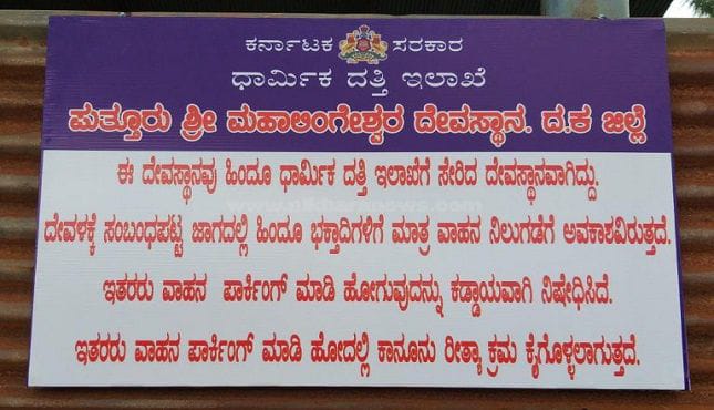 ಪುತ್ತೂರು ಶ್ರೀ ಮಹಾಲಿಂಗೇಶ್ವರ ದೇವಸ್ಥಾನದ ವ್ಯವಸ್ಥಾಪನಾ ಸಮಿತಿಯು , ದೇವಸ್ಥಾನದ ದೇವರಮಾರು ಗದ್ದೆಯಲ್ಲಿ ಇನ್ನುಮುಂದೆ ಹಿಂದೂ ಭಕ್ತರಿಗೆ ಮಾತ್ರ ಪಾರ್ಕಿಂಗ್ ಮಾಡುವುದಕ್ಕೆ ಮಾತ್ರ ಅವಕಾಶ ಎಂದು ಪ್ರಕಟಣೆ ತಿಳಿಸಿದೆ.