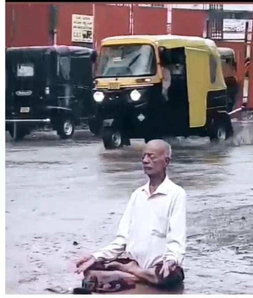 ಧಾರವಾಡದಲ್ಲಿ ಜೋರಾಗಿ ಬರುತ್ತಿದ್ದ ಸಂದರ್ಭ ಮಳೆಯಲ್ಲಿ ರಸ್ತೆಯಲ್ಲಿಯೇ ಕಣ್ಣು ಮುಚ್ಚಿ ವೃದ್ಧರೊಬ್ಬರು ಗಾಢ ತಪಸ್ಸು ಕೈಗೊಂಡಿದ್ದಾರೆ. ಅವರು ನಡು ರಸ್ತೆಯಲ್ಲಿ ಕುಳಿತು ತಪಸ್ಸು ಮಾಡುತ್ತಿದ್ದಾರೆ. ಅತ್ತ ಇತ್ತ ಮಿಸುಕದೆ ಕಣ್ಣು ಮುಚ್ಚಿ, ಬೆನ್ನನ್ನು ನೇರವಾಗಿ ಇಟ್ಟು ಒಂಚೂರು ಅಲುಗಾಡದೆ ಮಾಡುತ್ತಿರುವ ಅಜ್ಜನ ತಪಸ್ಸು ಭಯಂಕರವಾಗಿದೆ. ಈಗ ಆಸಕ್ತ ದಾರಿಹೋಕ ಯುವಕರು ಈ ದೃಶ್ಯವನ್ನು ಮೊಬೈಲ್ನಲ್ಲಿ ಸೆರೆಯಾಗಿದ್ದು, ಸದ್ಯ ಸಾಮಾಜಿಕ ಜಾಲತಾಣದಲ್ಲಿ ಈ ವಿಡಿಯೋ ವೈರಲ್ ಆಗುತ್ತಿದೆ.