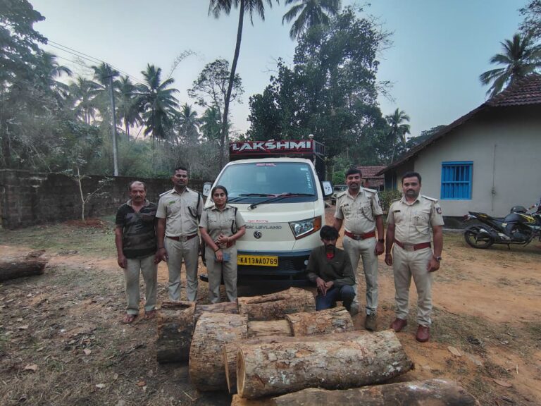 ವಾಹನದ ಮೇಲ್ಬಾಗದಲ್ಲಿ ಟಾರ್ಪಲ್ ಹಾಕಿ ಭತ್ತದ ಹೊಟ್ಟು ಇರುವ ಚೀಲ ಹಾಕಿ ಅದರ ಅಡಿ ಭಾಗದಲ್ಲಿ ಬೀಟಿ ಮರಗಳ 25 ತುಂಡುಗಳನ್ನು ಸಾಗಿಸುತ್ತಿರುವುದನ್ನು ಪತ್ತೆಹಚ್ಚಿ ಆರೋಪಿಗಳನ್ನು ಅರಣ್ಯ ಇಲಾಖೆ ಬಂಧಿಸಿದೆ. ಆರೋಪಿಗಳಾದ ವಾಹನ ಚಾಲಕ ಬಿ.ಎಂ ಸಜನ್ ನಾಪೋಕ್ಲು ಇವರನ್ನು ಬಂಧಿಸಿ ನ್ಯಾಯಾಲಯದ ಮುಂದೆ ಹಾಜರುಪಡಿಸಿ ನ್ಯಾಯಾಂಗ ಬಂಧನಕ್ಕೆ ಒಪ್ಪಿಸಲಾಗಿದೆ.
