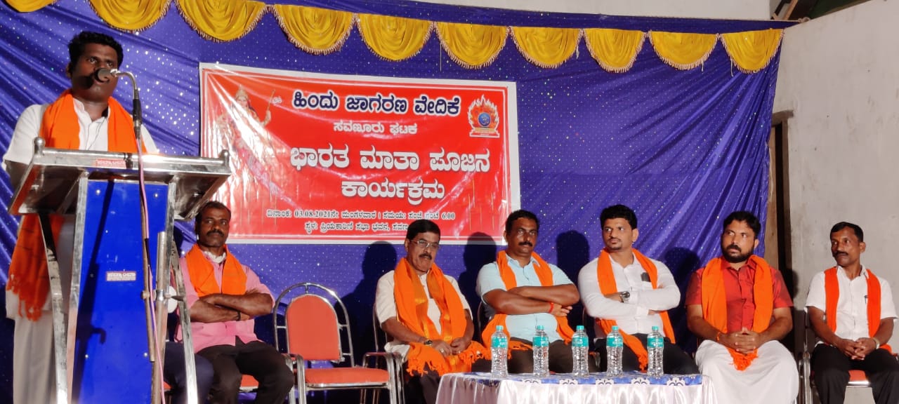 ಸವಣೂರು : ಹಿಂದೂ ಜಾಗರಣ ವೇದಿಕೆ ಸವಣೂರು ಘಟಕ, ಪುತ್ತೂರು ತಾಲೂಕು ಇದರ ವತಿಯಿಂದ ಭಾರತ ಮಾತಾ ಪೂಜನ ಕಾರ್ಯಕ್ರಮ ಆ.3ರಂದು ಸಂಜೆ ಸವಣೂರಿನ ಪ್ರಿಯಕಾರಿಣಿ ಸಭಾ ಭವನದಲ್ಲಿ ನಡೆಯಿತು. ಕಾರ್ಯಕ್ರಮದ ದಿಕ್ಸೂಚಿ ಭಾಷಣಕಾರರಾಗಿ ಆಗಮಿಸಿದ ಹಿಂದೂ ಜಾಗರಣ ವೇದಿಕೆ ಕರ್ನಾಟಕ ಪ್ರಾಂತ ಸಂಘಟನಾ ಕಾರ್ಯದರ್ಶಿ ಶ್ರೀ ಪ್ರಶಾಂತ್ ಬಿ ಮಾತನಾಡಿ ಭಾರತ ದೇಶದ ಸಂಸ್ಕೃತಿ, ಆಚಾರ ವಿಚಾರಗಳ ಬಗ್ಗೆ ತಿಳಿಯಪಡಿಸಿ ಮುಂದಿನ ಪೀಳಿಗೆಗೆ ಇವುಗಳ ಮಹತ್ವವನ್ನು ಉಳಿಸಬೇಕಾದದು ನಮ್ಮೆಲ್ಲರ ಕರ್ತವ್ಯ ಎಂದರು.ಹಿಂದು ಸಮಾಜ ಸಂಘಟಿತರಾಗಬೇಕೆಂದು ಕರೆ ನೀಡಿದರು.