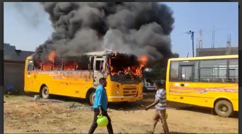 ಬಸ್ ನಲ್ಲಿ ಎಂದಿನಂತೆ ಶಾಲಾ ಮಕ್ಕಳನ್ನು ಕರೆದುಕೊಂಡು ಬಂದ ಚಾಲಕ, ಬಸ್ ನಿಂದ ಮಕ್ಕಳನ್ನು ಕೆಳಗಿಳಿಸಿ ಶಾಲಾ ಆವರಣದಲ್ಲಿ ಇತರೆ ಬಸ್ ಗಳ ಪಕ್ಕದಲ್ಲಿ ನಿಲ್ಲಿಸಿ ಹೊರ ಬಂದ ಸ್ವಲ್ಪ ಹೊತ್ತಿನಲ್ಲೇ ಇದ್ದಕ್ಕಿದ್ದಂತೆ ಬಸ್ ಗೆ ಬೆಂಕಿ ತಗುಲಿ ದಿಢೀರನೇ ಹೊತ್ತಿ ಉರಿಯಲು ಪ್ರಾರಂಭಿಸಿತು.