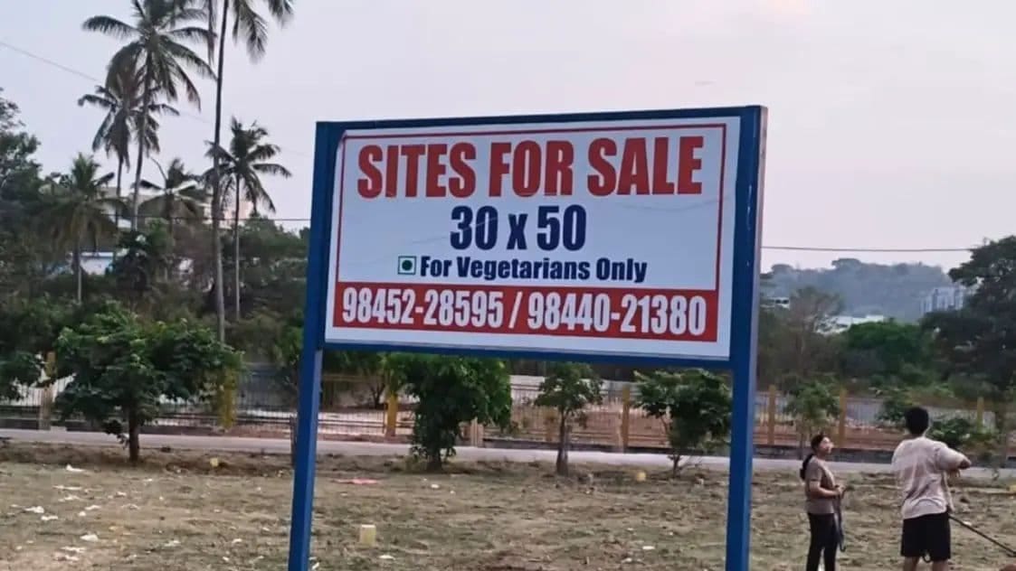 ಹೌದು, ಸಾಮಾನ್ಯವಾಗಿ ಜಾಗ ಸೈಟ್ ಮಾರಾಟದ ಜಾಹೀರಾತು ಫಲಕಗಳಲ್ಲಿ ಎಷ್ಟು ಜಾಗ ಸೇಲ್ಗಿದೆ, ಸ್ಥಳ ಎಲ್ಲಿ ಹಾಗೂ ಸಂಪರ್ಕ ವಿವರಗಳನ್ನು ನೀಡಲಾಗುತ್ತದೆ. ಆದ್ರೆ ಇಲ್ಲೊಂದು ಕಡೆ ಸಸ್ಯಹಾರಿಗಳಿಗೆ ಮಾತ್ರ ಜಾಗ ಮಾರಾಟಕ್ಕಿದೆ ಎಂಬ ಜಾಹೀರಾತನ್ನು ನೀಡಿದ್ದಾರೆ