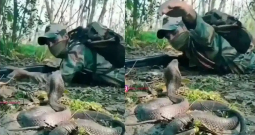 ಸೈನಿಕನೊಬ್ಬ ಕಾಡಿನಲ್ಲಿ ಹೋಗುತ್ತಿರುವಾಗ ನಾಗರಹಾವು ತಲೆ ಎತ್ತಿ ನಿಂತಿದ್ದು ಈ ವೇಳೆ ವೀರ ಸೈನಿಕ ಅತ್ಯಂತ ಮಾರಕ ಹಾವಿಗೂ ಹೆದರದೆ ಆತ ಮಾಡಿದ ಕಾರ್ಯ ನೋಡಿದ್ರೆ ಬೆಚ್ಚಿ ಬೀಳೋದು ಗ್ಯಾರಂಟಿ.