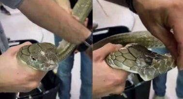 ಈ ವಿಡಿಯೋವನ್ನು ಸಾಮಾಜಿಕ ಜಾಲತಾಣ ಇನ್ಸ್ಟಾಗ್ರಾಮ್ನಲ್ಲಿ ಹಂಚಿಕೊಂಡಿದ್ದು . ಹಾವಿನೊಂದಿಗೆ ಈ ರೀತಿ ಮಾಡಲು, ಹಾವುಗಳನ್ನು ನಿಭಾಯಿಸುವಲ್ಲಿ ಧೈರ್ಯದ ಜೊತೆಗೆ ಅನುಭವವೂ ಬಹಳ ಮುಖ್ಯ. ಈ ದೃಶ್ಯ ನೋಡಲು ಮೈ ಜುಮ್ ಎನ್ನುವುದು ಖಂಡಿತ.
