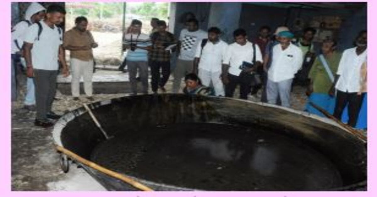 Sri Lanka Farmers visit: ಸಾವಯವ ಬೆಲ್ಲ ಉತ್ಪಾದನೆ ಮಾಡುವ ಸುಂಕಾತೊಣ್ಣೂರು ಗ್ರಾಮದ ದೇವೇಗೌಡ ಅವರ ಆಲೆಮನೆಗೆ ಶ್ರೀಲಂಕಾ ದೇಶದ ಹಲವು ರೈತರು ಶುಕ್ರವಾರ ಭೇಟಿಕೊಟ್ಟು ಸಾವಯವ ಕೃಷಿ ಹಾಗೂ ಬೆಲ್ಲ ತಯಾರಿಕೆ ಕುರಿತು ಮಾಹಿತಿ ಪಡೆದುಕೊಂಡರು. ರೈತ ದೇವೇಗೌಡ ಅವರ ಆಲೆಮನೆಗೆ ಭೇಟಿಕೊಟ್ಟು ಶ್ರೀಲಂಕಾ ದೇಶದ ರೈತರಾದ ರಾಣಿಯಮ್ಮ, ಅನುಕ ಹಾಗೂ ಶ್ರಮಿಳಾ ಸೇರಿದಂತೆ ಸುಮಾರು 13ಕ್ಕೂ ಅಧಿಕ ಮಂದಿ ರೈತರು ಸಾಯವಯ ಕೃಷಿಯ ಬಗ್ಗೆ ಮಾಹಿತಿ ಪಡೆದುಕೊಂಡರು.