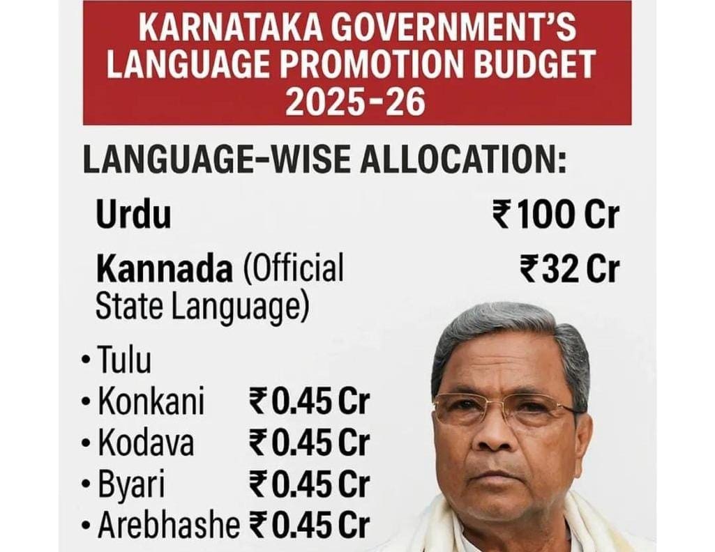 ಉರ್ದು ಭಾಷೆಯ ಅಭಿವೃದ್ಧಿಗೆ ₹100 ಕೋಟಿ ಮೀಸಲು, ಕನ್ನಡ ಭಾಷೆಗೆ ಕೇವಲ ₹32 ಕೋಟಿ.