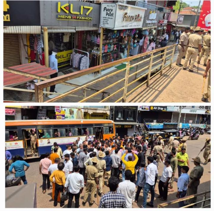ಬಸ್ಸು ನಿಲ್ದಾಣದ ಬಳಿ ಇರುವ ಮುಸ್ಲಿಂ ಸಮುದಾಯದ ಅಂಗಡಿಗಳನ್ನು ಬಂದ್ ಮಾಡಲು ಕಾರ್ಯಕರ್ತರು ಆಗ್ರಹ ಮಾಡಿದ್ದು, ಪೊಲೀಸರು ಪರಿಸ್ಥಿತಿಯನ್ನು ನಿಯಂತ್ರಣಕ್ಕೆ ತರಲು ಹರಸಾಹಸ ಮಾಡುತ್ತಿದ್ದಾರೆ.