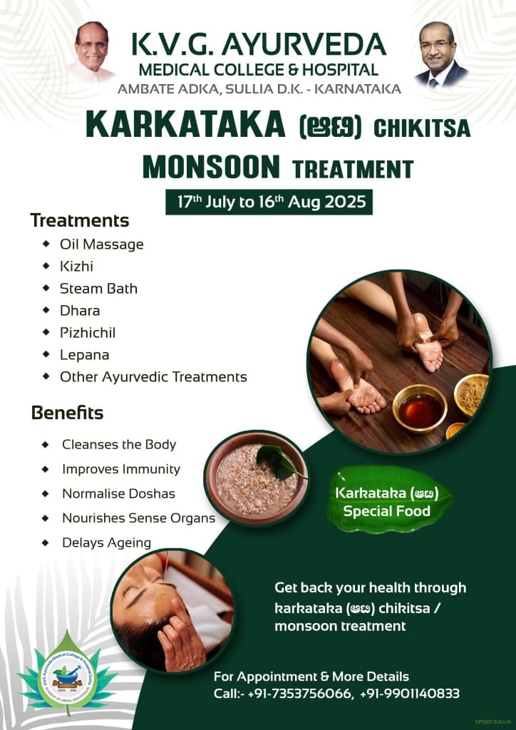 Sullia: ಕೆವಿಜಿ ಆಯುರ್ವೇದ ಮೆಡಿಕಲ್ ಕಾಲೇಜು ಮತ್ತು ಆಸ್ಪತ್ರೆ ಸುಳ್ಯದಲ್ಲಿ ಕರ್ಕಾಟಕ (ಆಟಿ) ಚಿಕಿತ್ಸಾ ಶಿಬಿರವು ದಿನಾಂಕ 17.07.2025 ರಿಂದ 16.08.2025 ರವರೆಗೆ ನಡೆಯಲಿದ್ದು, ಕಾರ್ಯಕ್ರಮದ ಉದ್ಘಾಟನಾ ಸಮಾರಂಭವು ದಿನಾಂಕ 17.07.2025ರಂದು ಕೆವಿಜಿ ಆಯುರ್ವೇದ ಆಸ್ಪತ್ರೆಯಲ್ಲಿ ನೆರವೇರಿತು.