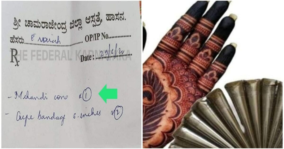 ಡಾಕ್ಟರ್ ಪ್ರಿನ್ಕ್ರಿಪ್ಷನ್ ಚೀಟಿಯಲ್ಲಿ ಒಂದು ಮೆಹೆಂದಿ ಕೋನ್ ಹಾಗೂ ಎರಡು ಕ್ರೇಪ್ ಬ್ಯಾಂಡೇಜ್ ತರುವಂತೆ ಬರೆದುಕೊಟ್ಟಿದ್ದರು. ಕಾಲು ಮೂಳೆ ಮುರಿದು ಬ್ಯಾಂಡೇಜ್ ಹಾಕಿಕೊಂಡಿದ್ದ ರೋಗಿ ಅದನ್ನು ಹುಡುಕಿಕೊಂಡು ಮೆಡಿಕಲ್ ಶಾಪ್, ಬ್ಯಾಂಗಲ್ ಸ್ಟೋರ್ ಅಲೆಯುತ್ತಿದ್ದಾಗ ಸಾಮಾಜಿಕ ಹೋರಾಟಗಾರ್ತಿ ಸುನೀತಾ ಹೆಬ್ಬಾರ್ ಅವರಿಗೆ ದೊರಕಿದ್ದರಿಂದ ಅವರು ಆ ಚೀಟಿಯ ಫೋಟೋ ತೆಗೆದು ಸಾಮಾಜಿಕ ಜಾಲತಾಣದಲ್ಲಿ ಪೋಸ್ಟ್ ಮಾಡಿದ್ದರು.