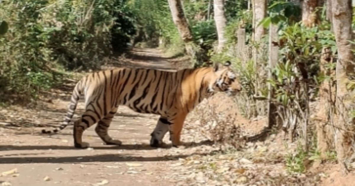 ಹೌದು, ಇಂದು ಬೆಳಿಗ್ಗೆ 10 ಗಂಟೆ ಸಮಯದಲ್ಲಿ ನಲ್ಲೂರು ಗ್ರಾಮದ ಕೊಕ್ಕಲೆಮಾಡ ದೇವಯ್ಯ ಎಂಬುವವರ ನಿವಾಸದ ಕಡೆಗೆ ತೆರಳುವ ರಸ್ತೆಯಲ್ಲಿ ಹುಲಿ ಸಾಗುತ್ತಿರುವ ದೃಶ್ಯ ಕಂಡುಬಂದಿದೆ. ಹುಲಿ ರಸ್ತೆ ದಾಟುತ್ತಿರುವ ದೃಶ್ಯ ಮೊಬೈಲ್ ಕ್ಯಾಮರಾದಲ್ಲಿ ಸೆರೆಯಾಗಿದೆ. ಮೊಬೈಲ್ ಕ್ಯಾಮರದಲ್ಲಿ ಸೆರೆಯಾದ ವಿಡಿಯೋ ಸದ್ಯ ಸಾಮಾಜಿಕ ಮಾಧ್ಯಮಗಳಲ್ಲಿ ವೈರಲ್ ಆಗುತ್ತಿದೆ.