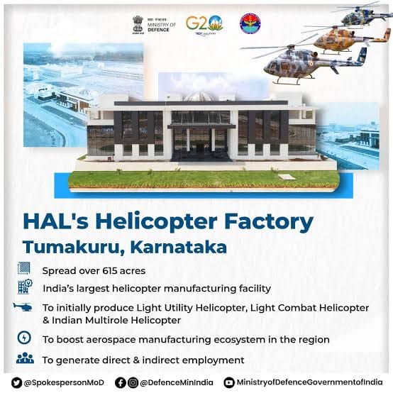 ತುಮಕೂರಿನಲ್ಲಿ ಸುಮಾರು 615 ಎಕ್ರೆ ಪ್ರದೇಶದಲ್ಲಿ ನಿರ್ಮಾಣಗೊಂಡಿರುವ ಹಿಂದೂಸ್ಥಾನ್ ಏರೋನಾಟಿಕ್ಸ್ ಲಿ., (ಎಚ್ಎಎಲ್)ನ ದೇಶದ ಅತಿದೊಡ್ಡ ಹೆಲಿಕಾಪ್ಟರ್ ತಯಾರಿ ಕಾರ್ಖಾನೆ ಫೆ. 6ರಂದು ರಾಷ್ಟ್ರಕ್ಕೆ ಸಮರ್ಪಣೆಯಾಗಲಿದೆ.