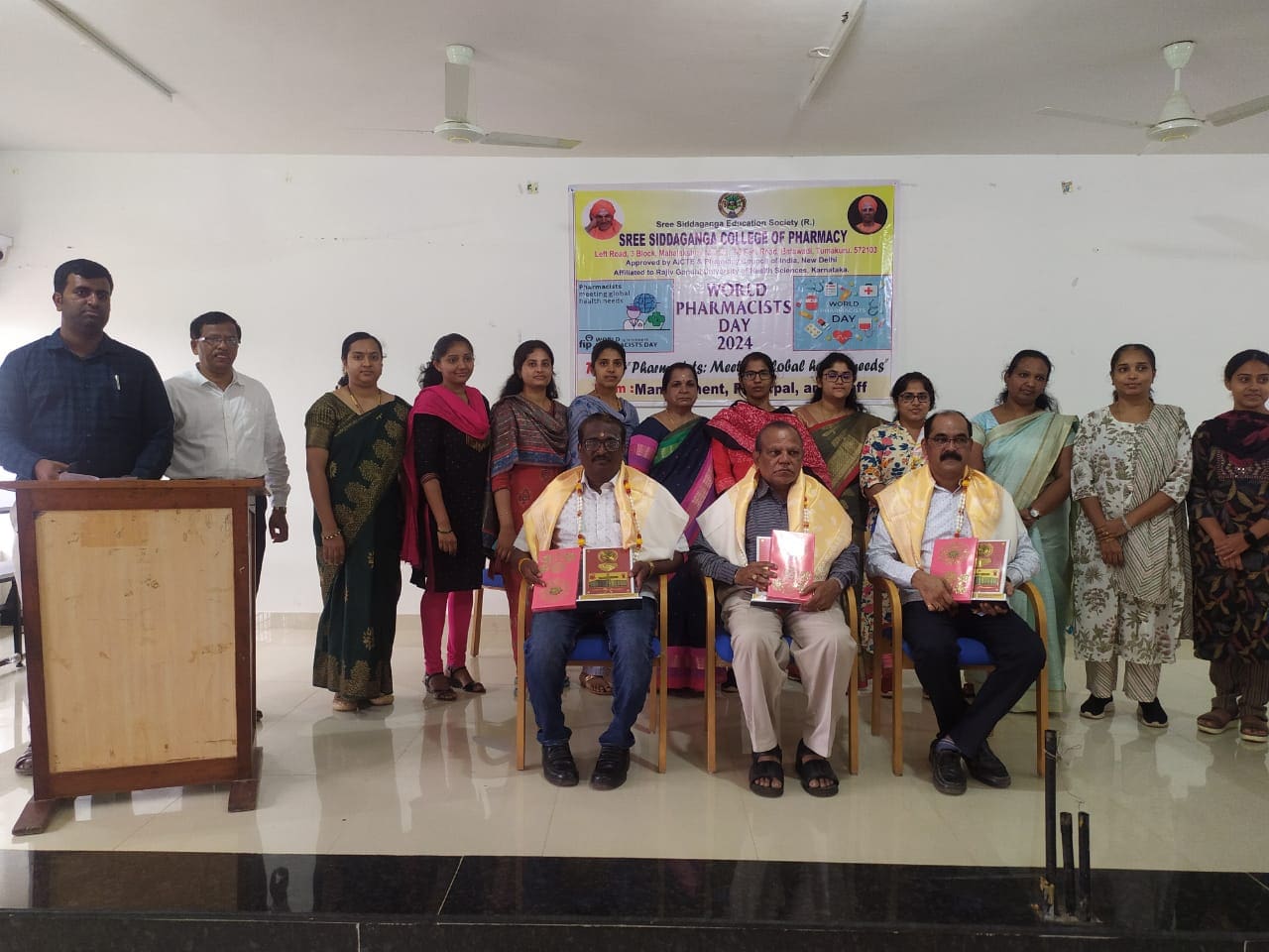 ತುಮಕೂರು ನಗರದ ಶ್ರೀ ಸಿದ್ದಗಂಗಾ ಫಾರ್ಮಸಿ ಕಾಲೇಜಿನಲ್ಲಿ ವಿಶ್ವ ಫಾರ್ಮಸಿಸ್ಟ್ ದಿನಾಚರಣೆಯನ್ನು ಏರ್ಪಡಿಸಲಾಗಿತ್ತು. ಕಾರ್ಯಕ್ರಮದಲ್ಲಿ ಮುಖ್ಯ ಅತಿಥಿಗಳಾಗಿ ಶ್ರೀ ಗಟ್ಟಿ ಗಂಗಾಧರ್, ಹಿರಿಯ ಔಷಧಿಕಾರ, ಜಿಲ್ಲಾ ಆಸ್ಪತ್ರೆ, ಶ್ರೀ ಎನ್ ಎಸ್ ರಮೇಶ್ ಎನ್ ಎಸ್ ಮೆಡಿಕಲ್ಸ್ ಮತ್ತು ಶ್ರೀ ಎನ್ ರಾಜೇಂದ್ರ, ಜಿಲ್ಲಾ ಆಸ್ಪತ್ರೆ, ತುಮಕೂರುರವರುಗಳು ಆಗಮಿಸಿ ತಮ್ಮ ಸ್ಪೂರ್ತಿದಾಯಕ ಮಾತುಗಳಿಂದ ವಿದ್ಯಾರ್ಥಿಗಳನ್ನು ಪ್ರೋತ್ಸಾಹಿಸಿದರು.