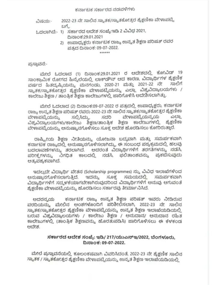 2022-23ನೇ ಸಾಲಿನ ಸ್ನಾತಕ, ಸ್ನಾತಕೋತ್ತರ ‘ಶೈಕ್ಷಣಿಕ ವೇಳಾಪಟ್ಟಿ’ ಪ್ರಕಟ