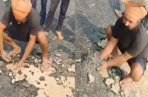 ಹೌದು ಹೊಸದಾಗಿ ನಿರ್ಮಾಣ ಮಾಡುತ್ತಿರುವ ಇನ್ನೂ ಪೂರ್ತಿಯಾಗದ ಡಾಂಬರು ರಸ್ತೆಯನ್ನು ವ್ಯಕ್ತಿಯೊಬ್ಬ ಬರಿಗೈಯಲ್ಲಿ ಕಿತ್ತು ಹಾಕಿದ ವಿಡಿಯೋ ಸಾಮಾಜಿಕ ಜಾಲತಾಣದಲ್ಲಿ ವೈರಲ್ ಆಗಿದೆ.
