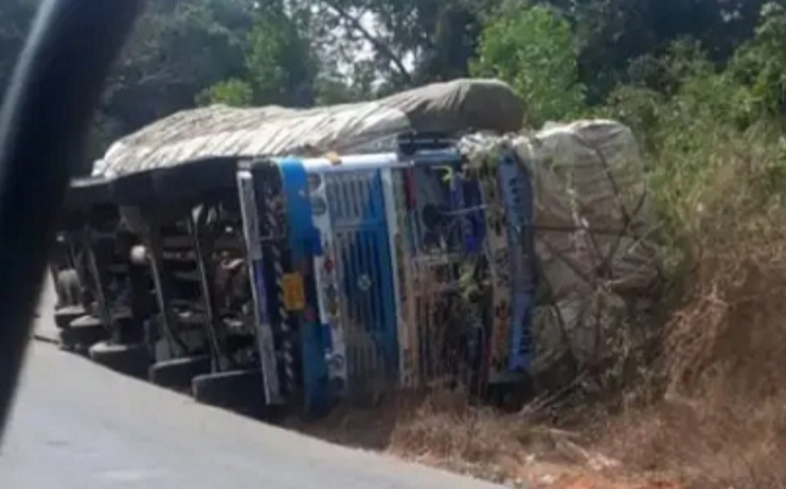 ಛತ್ತೀಸ್ ಘರ್ ನಿಂದ ಉಪ್ಪಿನಂಗಡಿಯ ಬೀಡಿ ಫ್ಯಾಕ್ಟರಿಯೊಂದಕ್ಕೆ ಬೀಡಿ ಎಲೆಗಳನ್ನು ಸಾಗಿಸುತ್ತಿದ್ದ ಲಾರಿ,ಎದುರಿನಿಂದ ಮತ್ತೊಂದು ವಾಹನವನ್ನು ಓವರ್ಟೇಕ್ ಮಾಡಿ ಬರುತ್ತಿದ್ದ ವಾಹನ ಢಿಕ್ಕಿ ಹೊಡೆಯುವುದನ್ನು ತಪ್ಪಿಸುವಾಗ ಪಲ್ಟಿಯಾಗಿದೆ