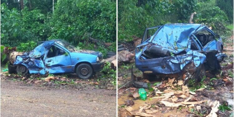Uppinangady: ಉಪ್ಪಿನಂಗಡಿ ರಾಜ್ಯ ಹೆದ್ದಾರಿ, ರಾಮಕುಂಜ ಗ್ರಾಮದ ಆತೂರು ಎಂಬಲ್ಲಿ ಬೃಹತ್ ಗಾತ್ರದ ಮಾವಿನ ಮರವೊಂದು ರಸ್ತೆ ಬದಿಯಲ್ಲಿ ನಿಂತಿದ್ದ ಮಾರುತಿ-800 ಕಾರಿನ ಮೇಲೆ ಬಿದ್ದಿದ್ದು, ಕಾರು ಸಂಪೂರ್ಣ ಜಖಂಗೊಂಡಿರುವ ಘಟನೆ ನಡೆದಿದೆ.