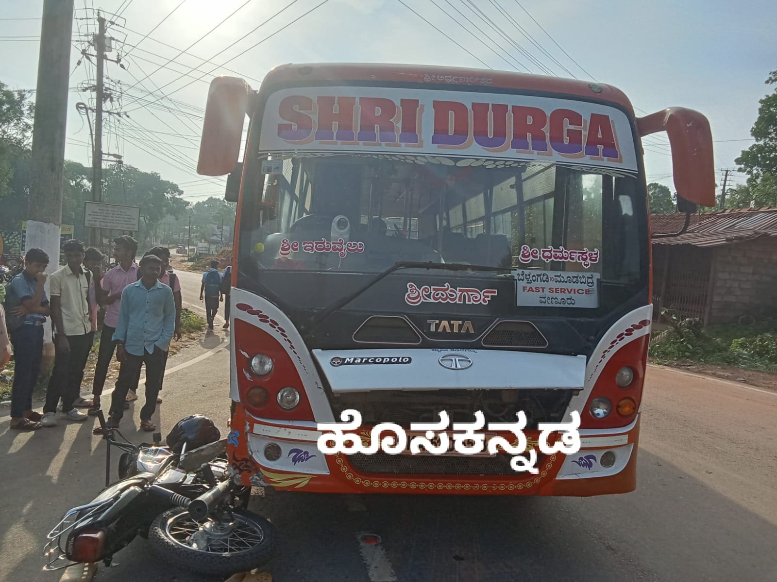 ಬೆಳ್ತಂಗಡಿಯಿಂದ ಮೂಡಬಿದಿರೆಗೆ ಚಲಿಸುತ್ತಿದ್ದ ಖಾಸಗಿ ಬಸ್ ಹಾಗೂ ಮೂಡಬಿದಿರೆ ಕಡೆಯಿಂದ ಬೈಕ್ ಮಧ್ಯೆ ಅಪಘಾತ ಉಂಟಾಗಿದೆ. ಬೈಕ್ನಲ್ಲಿದ್ದ ಇಬ್ಬರು ವಿದ್ಯಾರ್ಥಿಗಳಿಗೆ ಸಣ್ಣಪುಟ್ಟ ಗಾಯಗಳುಂಟಾಗಿದ್ದು, ಎಸ್ಡಿಎಂ ಹಾಸ್ಟಿಟಲ್ ಉಜಿರೆಗೆ ದಾಖಲು ಮಾಡಲಾಗಿದೆ.