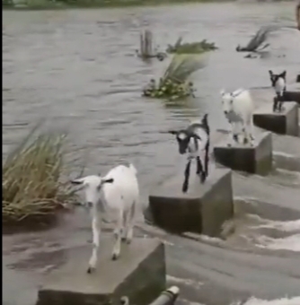 ಪ್ರಕೃತಿ ಮತ್ತು ಪ್ರಾಣಿಗಳಿಂದ ಮಾನವರಾದ ನಾವು ಕಲಿಯಬೇಕಾದದ್ದು ಬಹಳಷ್ಟಿದೆ ಎಂದರೆ ತಪ್ಪಾಗುತ್ತದೆ. ನಾವು ಹೆಚ್ಚು ಕಮ್ಮಿ ಕಲಿತೇ ಇಲ್ಲ ಎನ್ನಬಹುದು. ಇದೀಗ ಆಡುಗಳ ಹಿಂಡೊಂದು ನದಿ ದಾಟುವ ಮೂಲಕ ನಾವು ಬಹಳಷ್ಟು ಪಾಠವನ್ನು ಮತ್ತು ಚೂರಾದರೂ ಸ್ಪೂರ್ತಿಯನ್ನು ಪಡೆಯಲು ಕಾರಣವಾಗಿದೆ. ವೀಡಿಯೊದಲ್ಲಿ ಇರುವಂತೆ, ನದಿಯೊಂದರಲ್ಲಿ ವೇಗವಾಗಿ ನೀರು ಹರಿಯುತ್ತಿರುತ್ತದೆ. ಇದಕ್ಕೆ ಅಡ್ಡಲಾಗಿ ಕಟ್ಟಲಾಗಿರುವ ಕಾಂಕ್ರೀಟ್ ಬ್ಲಾಕ್ಗಳನ್ನು ಆ ಬಹಳ ಎಚ್ಚರಿಕೆಯಿಂದ ಜಿಗಿಯುವುದನ್ನು ನೋಡಬಹುದು.