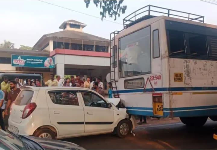Vitla: ಕೆಎಸ್ಆರ್ಟಿಸಿ ಬಸ್ ನಿಲ್ದಾಣದ ಮುಂದೆ ಕೇರಳ ಸರಕಾರಿ ಬಸ್ ಏಕಾಏಕಿ ನಿಂತ ಕಾರಣ ಹಿಂಬದಿಯಿಂದ ಬಂದ ಕಾರು ಗುದ್ದಿದ ಘಟನೆ ನಡೆದಿದೆ. ಕಾರಿನ ಮುಂಭಾಗ ತೀವ್ರವಾಗಿ ಹಾನಿಗೊಂಡಿದೆ.