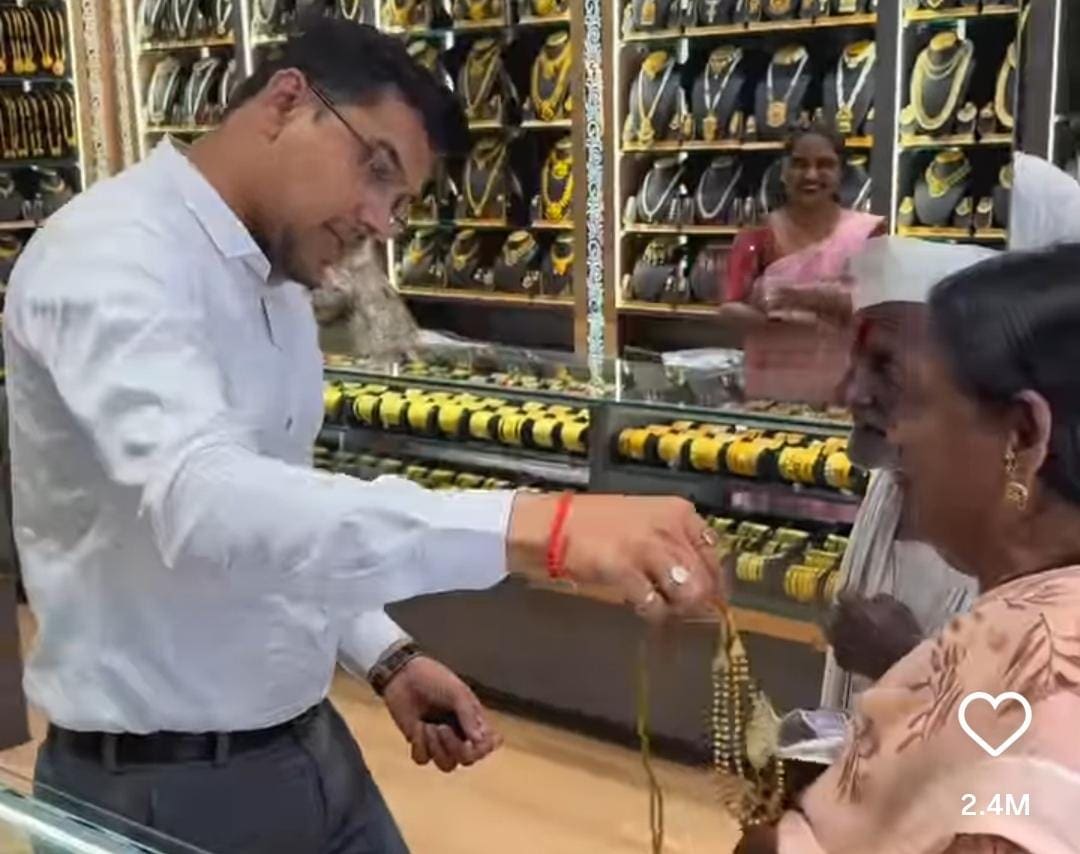 90ರ ಆಸು ಪಾಸಿನ ವೃದ್ಧ ದಂಪತಿಯೊಂದು ಪಂಡರಾಪುರ ವಿಠಲನ ದರ್ಶನಕ್ಕೆ ತೆರಳಿತ್ತು. ಆ ಹಿರಿಯ ಜೀವಕ್ಕೆ ಪಾಂಡುರಂಗನ ದರ್ಶನ ಮೊದಲು ತಮ್ಮ ಪತ್ನಿಗೆ ಚಿನ್ನದ ಕರಿಮಣಿ ಸರ ಕೊಡಿಸಬೇಕು ಎಂಬ ಬಯಕೆ ಅವರದಾಗಿತ್ತು. ಅದರಂತೆ ಈ ಹಣ್ಣು ಹಣ್ಣು ಪ್ರಾಯದ ಅಜ್ಜ ತಮ್ಮ ಪತ್ನಿಯನ್ನು ಕರೆದುಕೊಂಡು ತಾವು ಎಷ್ಟೋ ಕಾಲದಿಂದ ಕೂಡಿಟ್ಟ ಚಿಲ್ಲರೆ ಪಲ್ಲರೆ ಹಣವನ್ನೆಲ್ಲಾ ತೆಗೆದುಕೊಂಡು ಬಂದು ಚಿನ್ನದ ಅಂಗಡಿಯೊಂದಕ್ಕೆ ಬಂದಿದ್ದರು. ಈ ಸಂದರ್ಭದಲ್ಲಿ ಚಿನ್ನದ ಅಂಗಡಿಯ ಒಳಗಡೆ ನಡೆದ ಘಟನೆ ಎಂಥವರ ಕಣ್ಣಲ್ಲು ನೀರು ತರಿಸುವಂತಿತ್ತು. ಮಹಾರಾಷ್ಟ್ರದ ಸಂಭಾಜಿನಗರದಲ್ಲಿ ಈ ಘಟನೆ ನಡೆದಿದ್ದು, ಅಲ್ಲಿನ ಗೋಪಿಕಾ ಜ್ಯುವೆಲ್ಲರಿ ಸಂಭಾಜಿನಗರ ಎಂಬ ಇನ್ಸ್ಟಾ ಪೇಜ್ನಿಂದ ಈ ವೀಡಿಯೋ ಪೋಸ್ಟ್ ಆಗಿದೆ