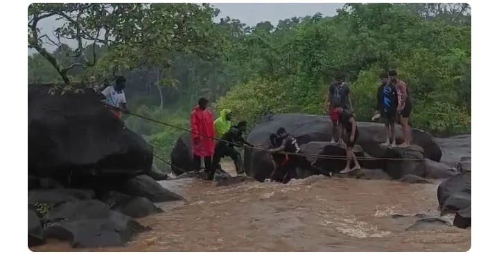 Mangalore: ದಕ್ಷಿಣ ಕನ್ನಡ ಜಿಲ್ಲೆಯ ಮೂಡಬಿದಿರೆ ಬಳಿಯ ಎರುಗುಂಡಿ ಫಾಲ್ಸ್ನಲ್ಲಿ ಅಪಾಯಕ್ಕೆ ಸಿಲುಕಿದ್ದ ಪ್ರವಾಸಿಗರನ್ನು ಸ್ಥಳೀಯರು ರಕ್ಷಣೆ ಮಾಡಿದ್ದಾರೆ.