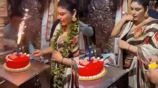 ಮಹಿಳೆಯ ಹೆಸರು ಮಮತಾ ರೈ ಎಂದು ಹೇಳಲಾಗಿದೆ. ಈಕೆ ಸೋಷಿಯಲ್ ಮೀಡಿಯಾ ಇನ್ಫ್ಲ್ಯುಯೆನ್ಸರ್. ಹುಟ್ಟುಹಬ್ಬದ ನಿಮಿತ್ತ ಉತ್ತರ ಪ್ರದೇಶದ ವಾರಾಣಸಿಯ ಕಾಲ ಭೈರವ ಸ್ವಾಮಿ ಮಂದಿರಕ್ಕೆ ಭೇಟಿ ನೀಡಿದ್ದರು. ಗರ್ಭಗುಡಿಯಲ್ಲಿ ದೇವರ ಎದುರೇ ಕ್ಯಾಂಡಲ್ ಹಚ್ಚಿ, ಕೇಕ್ ಇಡಲಾಗಿತ್ತು. ದೇಗುಲದಲ್ಲಿದ್ದ ಅರ್ಚಕರೊಬ್ಬರು ಮಹಿಳೆ ಕುತ್ತಿಗೆಗೆ ತುಳಸಿ ಅಥವಾ ಪತ್ರೆಯ ಮಾಲೆ ಹಾಕುತ್ತಾರೆ..ಹಣೆಗೆ ಏನೋ ಹಚ್ಚುತ್ತಾರೆ. ಬಳಿಕ ಆ ಮಹಿಳೆ ಕೇಕ್ ಕತ್ತರಿಸುತ್ತಾರೆ. ಅದರಲ್ಲಿ ಒಂದು ತುಂಡು ತೆಗೆದು ಮೊದಲು ದೇವರ ವಿಗ್ರಹದ ಎದುರು ಇಡುತ್ತಾರೆ. ನಂತರ ಮಹಿಳೆ ಅಲ್ಲಿಂದ ಹೋಗೋದನ್ನ ವಿಡಿಯೊದಲ್ಲಿ ನೋಡಬಹುದು. ಈ ಘಟನೆ ಶುಕ್ರವಾರ ನಡೆದಿದೆ ಎನ್ನಲಾಗಿದ್ದು, ಅಂದಿನಿಂದಲೂ ಭಾರಿ ವೈರಲ್ ಆಗುತ್ತಿದೆ.