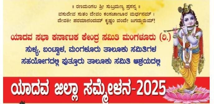 Putturu: ಯಾದವ ಸಭಾ ಕರ್ನಾಟಕ ಕೇಂದ್ರ ಸಮಿತಿ ಮಂಗಳೂರು (ರಿ.) ಸುಳ್ಯ, ಬಂಟ್ವಾಳ, ಮಂಗಳೂರು ತಾಲೂಕು ಸಮಿತಿಗಳ ಸಹಯೋಗದಲ್ಲಿ ಪುತ್ತೂರು ತಾಲೂಕು ಸಮಿತಿ ಆಶ್ರಯದಲ್ಲಿ ನಡೆಯುವ ಯಾದವ ಜಿಲ್ಲಾ ಸಮಾವೇಶ 2025 ಇದರ ಪ್ರಚಾರ ಪತ್ರ ಅನಾವರಣ ಕಾರ್ಯಕ್ರಮ ಫೆ.9 ರಂದು ಪುತ್ತೂರು ಶ್ರೀ ಮಹಾಲಿಂಗೇಶ್ವರ ದೇವಸ್ಥಾನದಲ್ಲಿ ನಡೆಯಲಿದೆ.