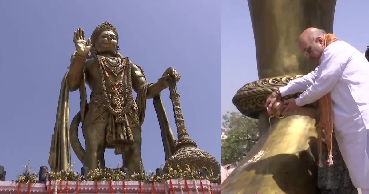 54 feet tall Hanuman statue : ಹನುಮಾನ್ ಜಯಂತಿಯನ್ನು ದೇಶಾದ್ಯಂತ ಆಚರಿಸಲಾಗುತ್ತಿದೆ. ಗುಜರಾತ್ ನ ಬೊಟಾಡ್ ಜಿಲ್ಲೆಯ ಸಲಂಗ್ಪುರ ದೇವಸ್ಥಾನದಲ್ಲಿ 54 ಅಡಿ ಎತ್ತರದ ಹನುಮಾನ್ ಪ್ರತಿಮೆಯನ್ನು (54 feet tall Hanuman statue) ಕೇಂದ್ರ ಗೃಹ ಸಚಿವ ಅಮಿತ್ ಶಾ ಅನಾವರಣಗೊಳಿಸಿದರು. ಸಲಂಗ್ಪುರದ ಹನುಮಾನ್ ದೇವಸ್ಥಾನದಲ್ಲಿ ಶ್ರೀ ಕಸ್ತೂರಿಭಂಜನೇವಾ ಡೈನಿಂಗ್ ಹಾಲ್ ಅನ್ನು ಅಮಿತ್ ಶಾ ಉದ್ಘಾಟಿಸಿದರು. ರೆಸ್ಟೋರೆಂಟ್ ಅನ್ನು ಏಳು ಎಕರೆ ಭೂಮಿಯಲ್ಲಿ ನಿರ್ಮಿಸಲಾಗಿದೆ.ಅಹಮದಾಬಾದ್ ನ 150 ಕಿ.ಮೀ ದೂರದಲ್ಲಿರುವ ಸಲಂಗ್ಪುರ್ ಹನುಮಾನ್ ದೇವಾಲಯ ಸಂಕೀರ್ಣದಲ್ಲಿ ಈ ಪ್ರತಿಮೆಯನ್ನು ನಿರ್ಮಿಸಲಾಗಿದೆ. ಈ ದೇವಾಲಯಕ್ಕೆ ಭೇಟಿ ನೀಡುವ ಮೂಲಕ ಜನರು ಶನಿ ದೇವರ ಕೋಪವನ್ನು ತೊಡೆದುಹಾಕುತ್ತಾರೆ ಎಂದು ನಂಬಲಾಗಿದೆ.