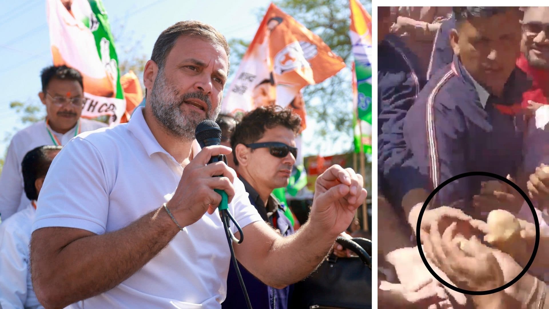 ಈ ವೇಳೆ ಕಾರ್ಯಕರ್ತರು ಜೈ ಶ್ರೀರಾಮ್, ಜೈ ಶ್ರೀರಾಮ್, ಮೋದಿ ಮೋದಿ ಎಂದು ಘೋಷಣೆ ಕೂಗಿದರು. ರಾಹುಲ್ ಗಾಂಧಿ ಅವರು ಅಲ್ಲಿಗೆ ಬಂದು ಬಿಜೆಪಿ ಕಾರ್ಯಕರ್ತರಿಗೆ ಹಸ್ತಲಾಘವ ಮಾಡಿದ್ದು, ಈ ಸಂದರ್ಭದಲ್ಲಿ ರಾಹುಲ್ ಗಾಂಧಿಗೆ ಚಿನ್ನ ತಯಾರಿಸಲು ಆಲೂಗಡ್ಡೆಯನ್ನು ನೀಡಿರುವ ಘಟನೆ ನಡೆದಿದೆ. ಬಿಜೆಪಿ ಕಾರ್ಯಕರ್ತರ ಬಳಿ ಬಂದು ಹಸ್ತಲಾಘವ ಮಾಡಿದ ರಾಹುಲ್ ಗಾಂಧಿಗೆ ಆಲೂಗಡ್ಡೆಯನ್ನು ಕಾರ್ಯಕರ್ತರು ನೀಡಿದ್ದಾರೆ.
