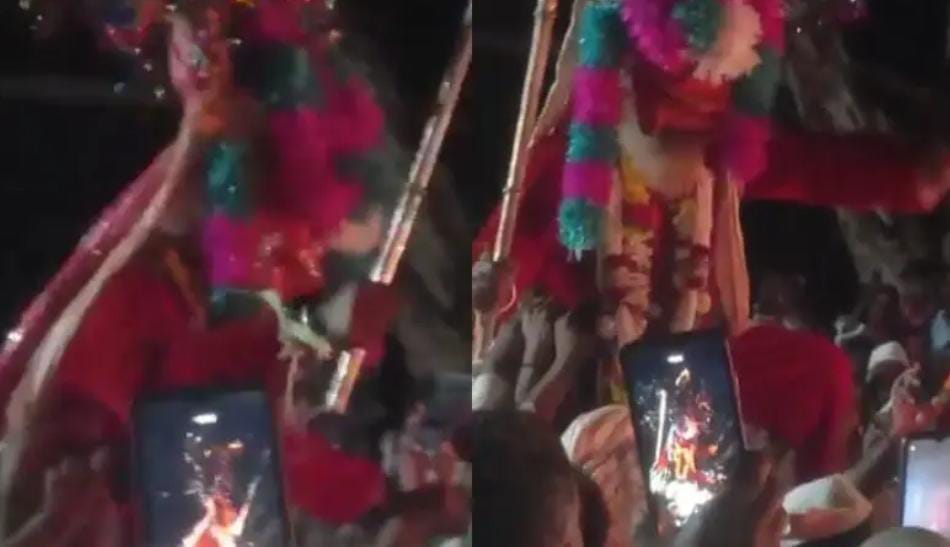 ಕೈಯ್ಯಲ್ಲಿ ಬೆಳ್ಳಿ ತ್ರಿಶೂಲ, ಮುಖಕ್ಕೆ ದೇವರ ಮುಖವಾಡ ಧರಿಸಿ ಭವಿಷ್ಯವನ್ನು ನುಡಿಯುತ್ತದೆ. ಈ ವೇಳೆ ದೈವ, ಕಾಂಗ್ರೆಸ್-ಬಿಜೆಪಿ ತಾ ಮುಂದು ನಾ ಮುಂದು ಎನ್ನುತ್ತವೆ. ಎರಡು ಪಕ್ಷಗಳ ನಡುವೆ ಭಾರೀ ತಿಕ್ಕಾಟ ನಡೆಯುತ್ತದೆ